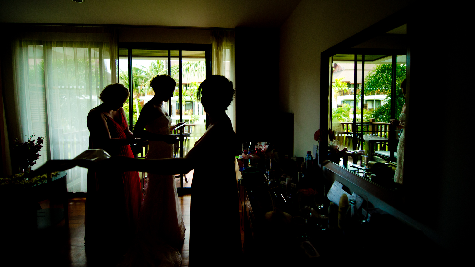Wedding day pictures taken at Amari Palm Reef in Samui Thailand.