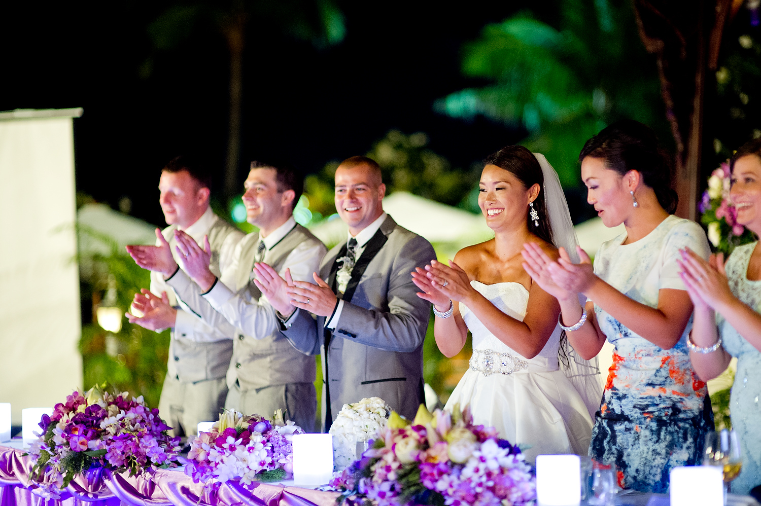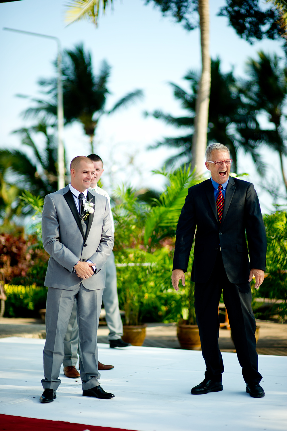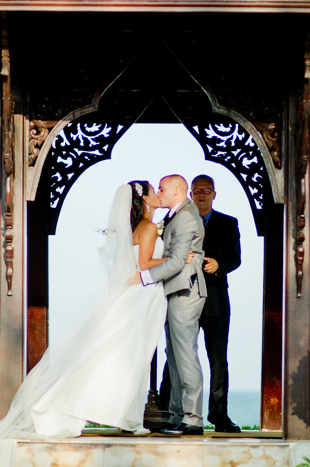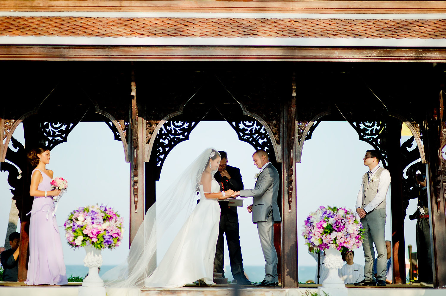 The wedding ceremony was held near the beach. It was consisted of speeches and exchange of the wedding rings. We did portraits of the wedding couple along with group pictures with the wedding party right after the ceremony. We also did portraits of the couple on the beach and around the resort.