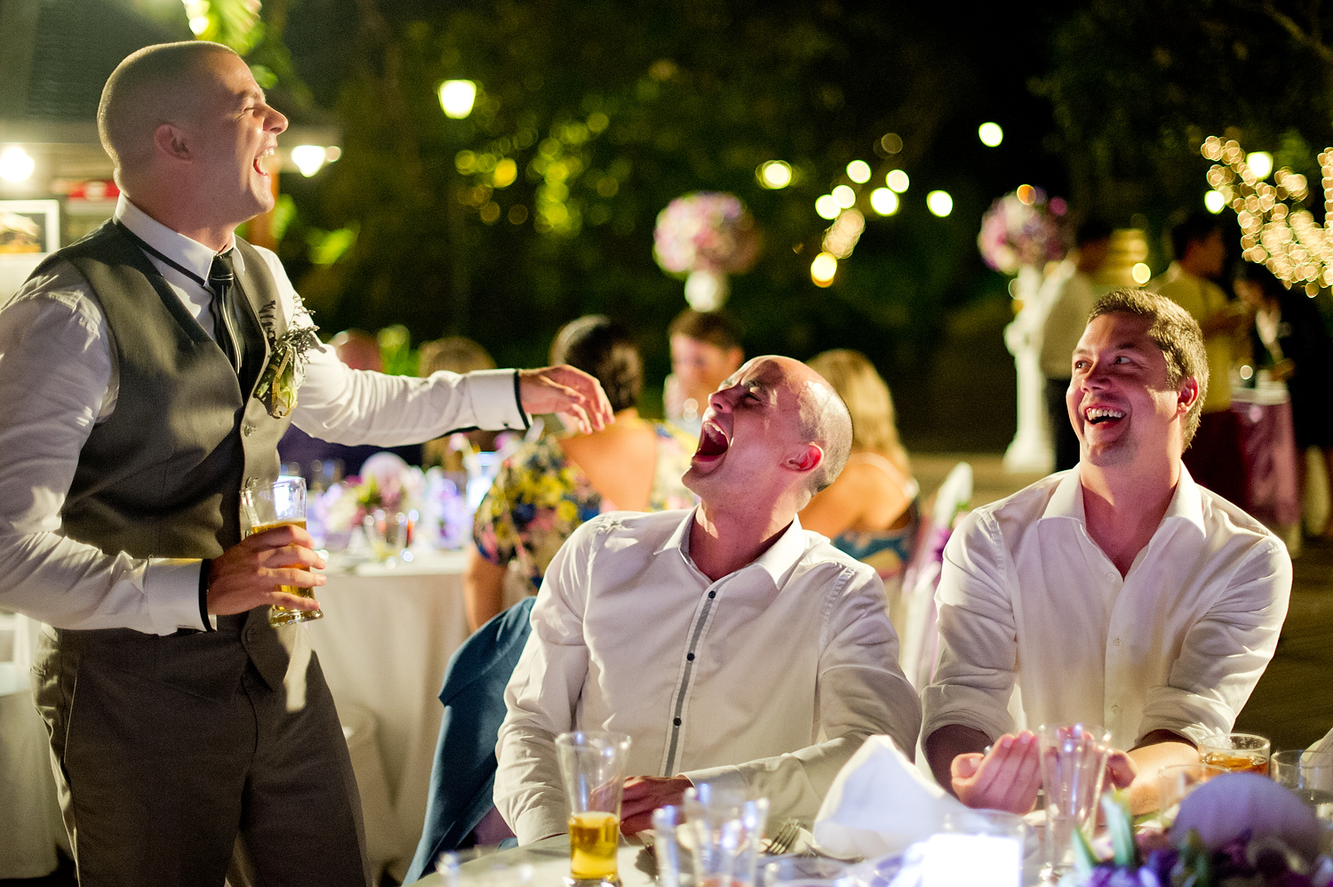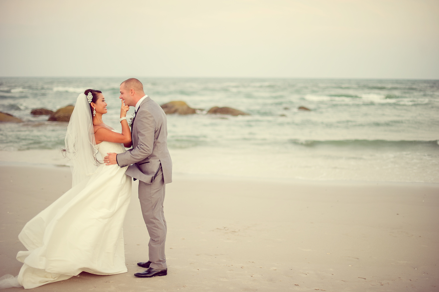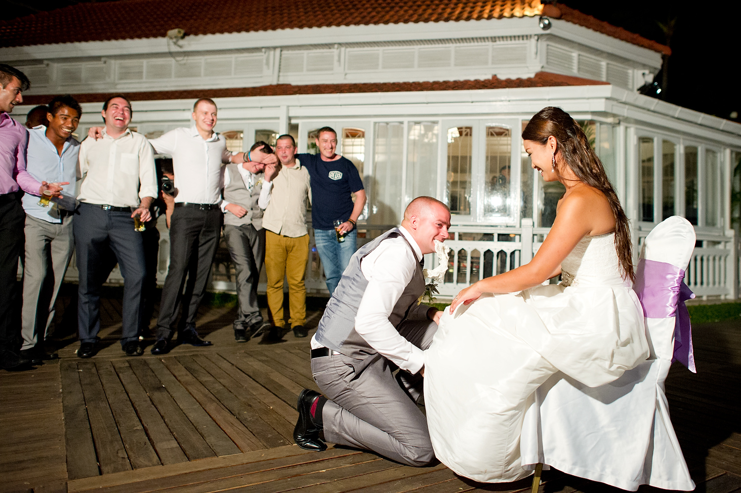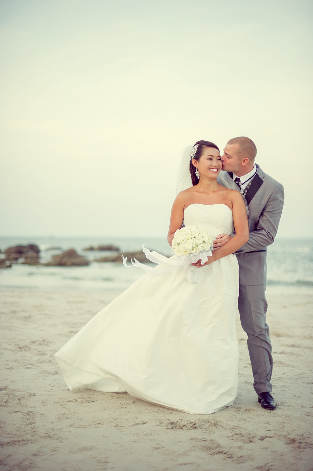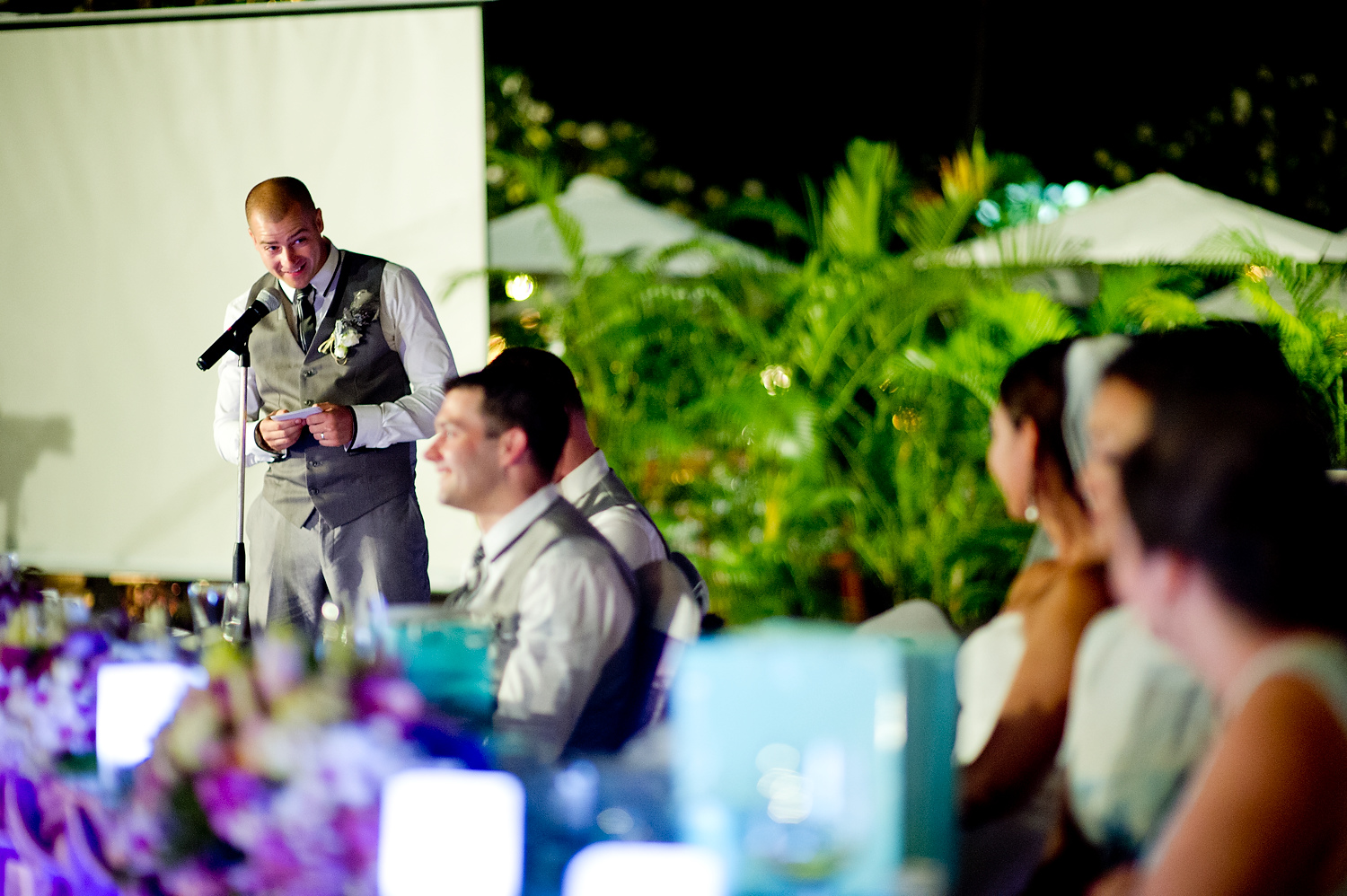 The wedding ceremony was held near the beach. It was consisted of speeches and exchange of the wedding rings. We did portraits of the wedding couple along with group pictures with the wedding party right after the ceremony. We also did portraits of the couple on the beach and around the resort.