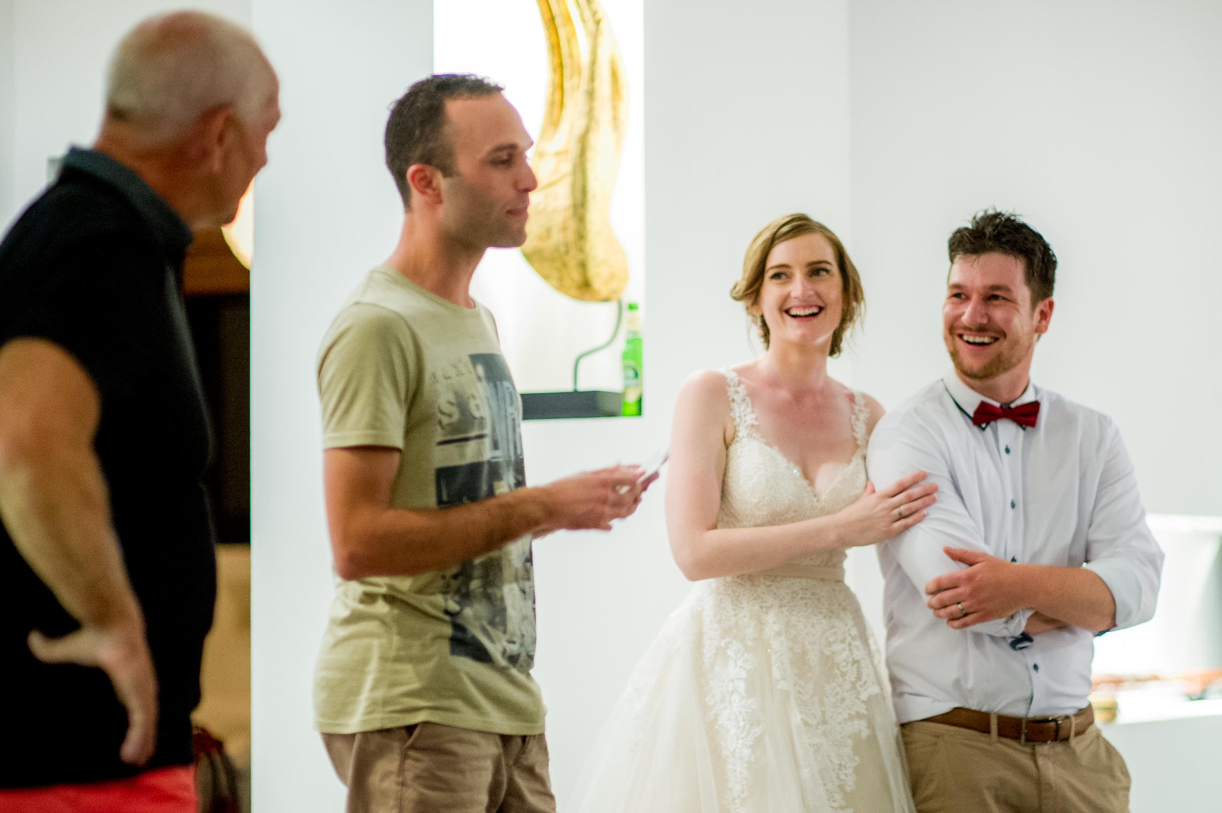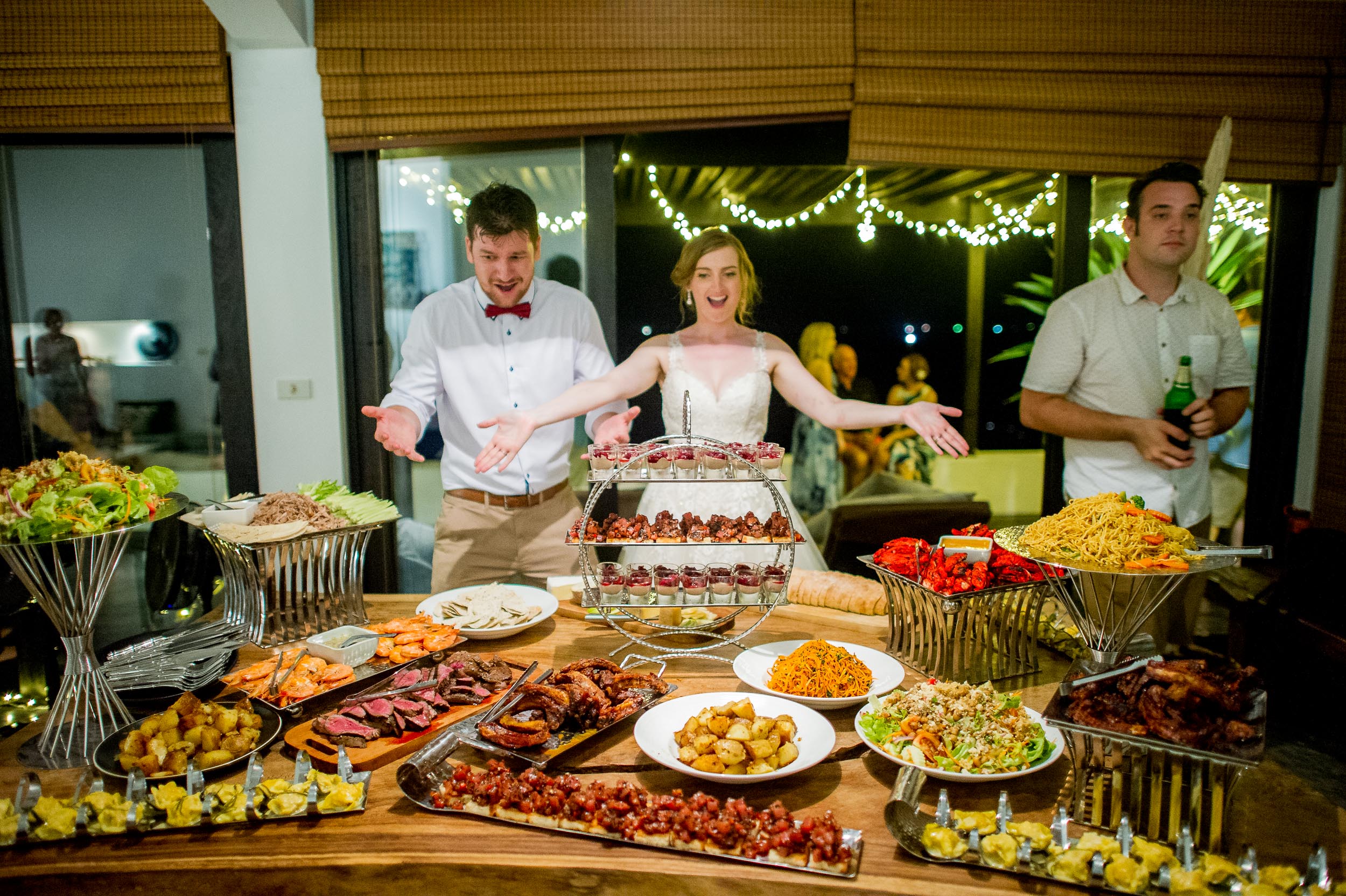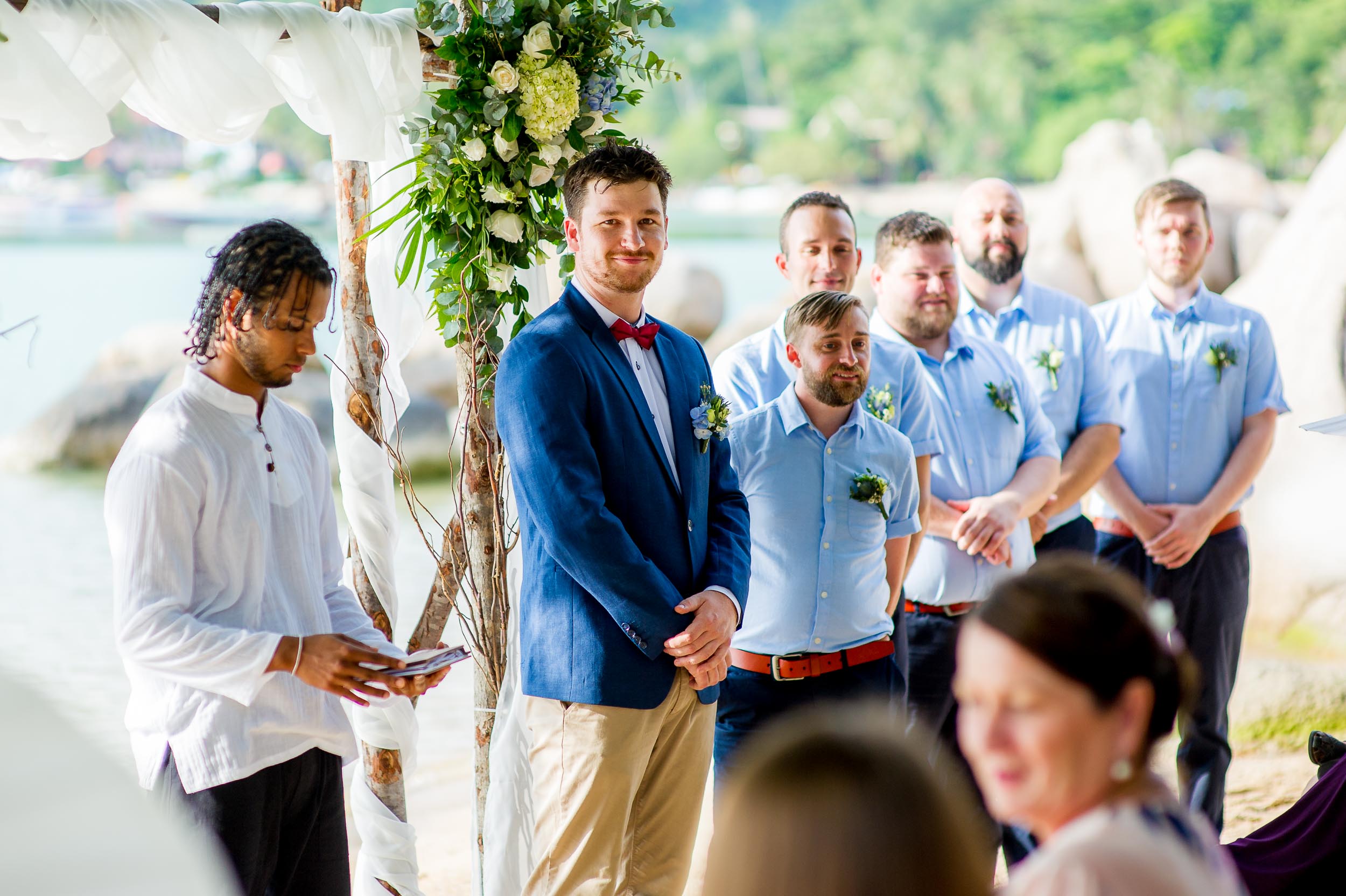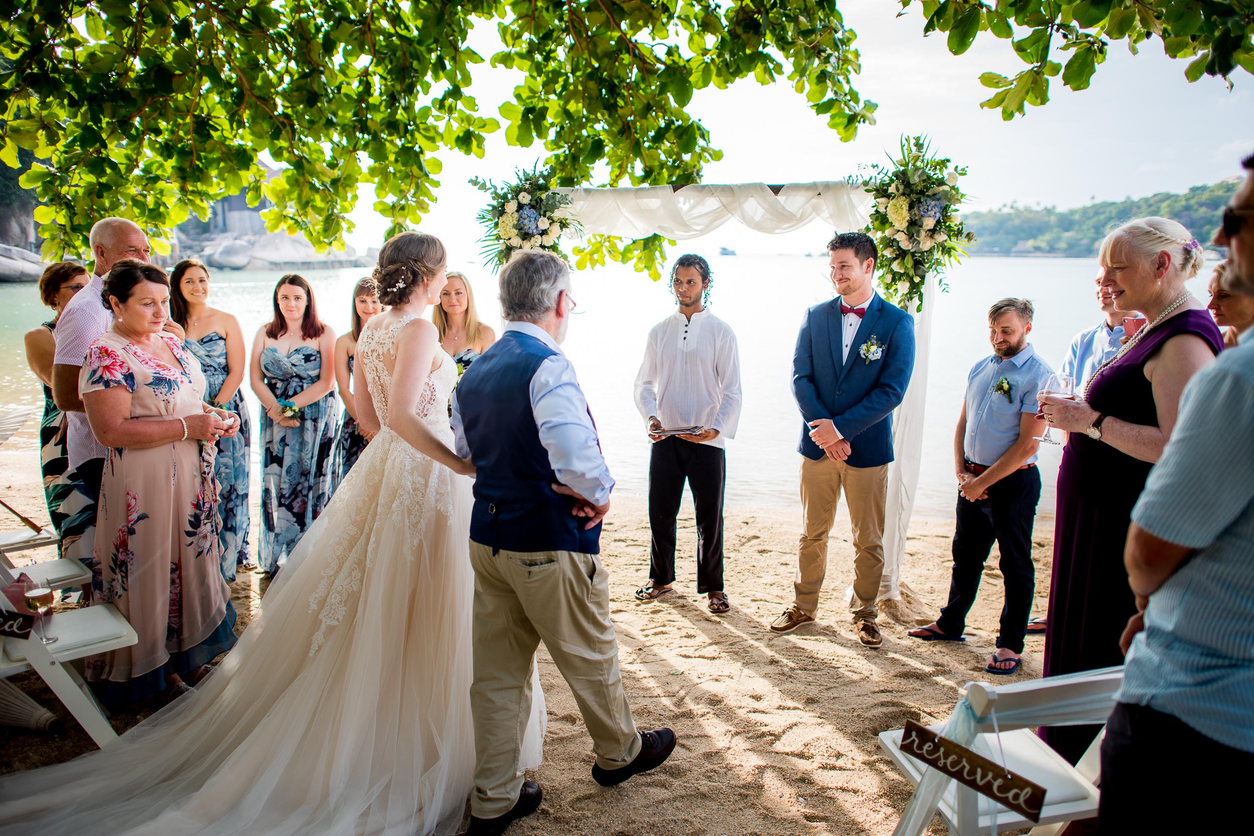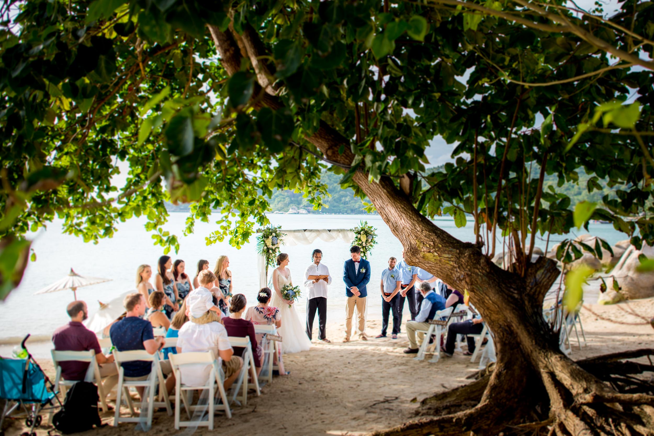 Beach wedding ceremony and drink reception was held at Freedom Beach and a nearby bar on Koh Tao. The beach was approximately 25 minutes away from the villas by car.